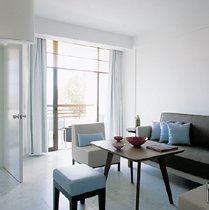 Following an extensive two-year renovation of the Paphos Beach Hotel, the town's first ever seaside hotel which first opened in 1972, Thanos Hotels launched Almyra in June 2003. The 190 rooms have been enlarged and redesigned, and the signature suites, aptly named Kyma Suites (meaning 'wave' in Greek) feature rooftop terraces offering breathtaking views of the sea and the harbour, which are candle-lit at night.