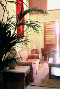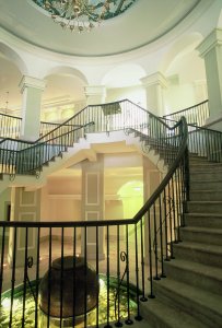 A Byzantine atmosphere pervades the lofty hallways, lounges and lobby.