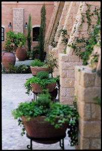 All basking in the fragrance, shrubs, citrus and olive trees.